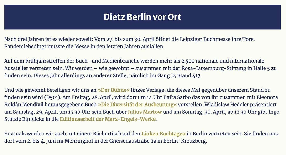 Auch wir sind auf der #LeipzigerBuchmesse und stellen gleich drei Bücher vor. Wer es nicht schafft, vorbei zu kommen: Wir sind im Juni auch bei den Linken #Buchtage|n in #Berlin mit einem Stand präsent. Wir freuen uns und über Besuch! #lbm23 #Leipzig